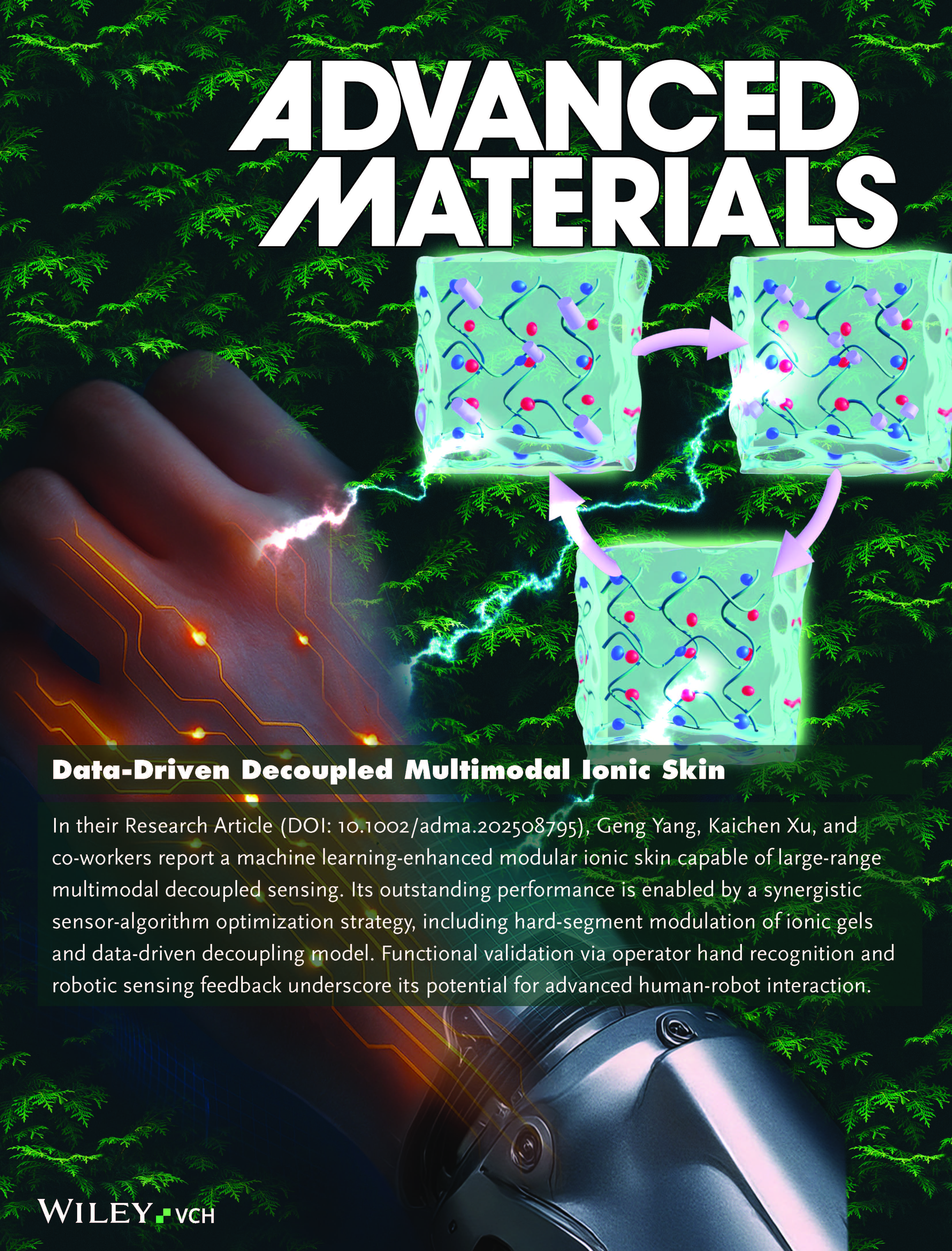 7. Qianqian Yang, Bingqiao Li, Mengke Wang, Gaoyang Pang, Yuyao Lu, Jiayan Li, Huayong Yang, Honghao Lyu, Kaichen Xu*, Geng Yang*, “Machine Learning-Enhanced Modular Ionic Skin for Broad-Spectrum Multimodal Discriminability in Bidirectional Human–Robot Interaction,” Advanced Materials, vol. 37, no. 42, e08795, DOI: 10.1002/adma.202508795, Jul. 2025. (Frontispiece)[LINK]